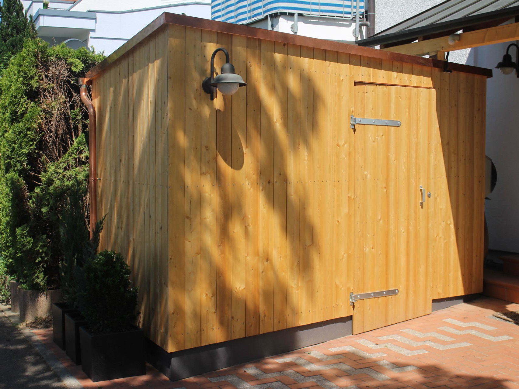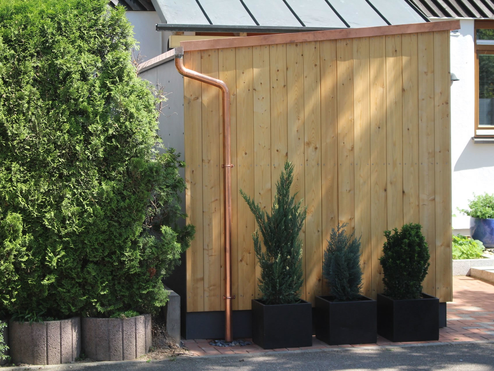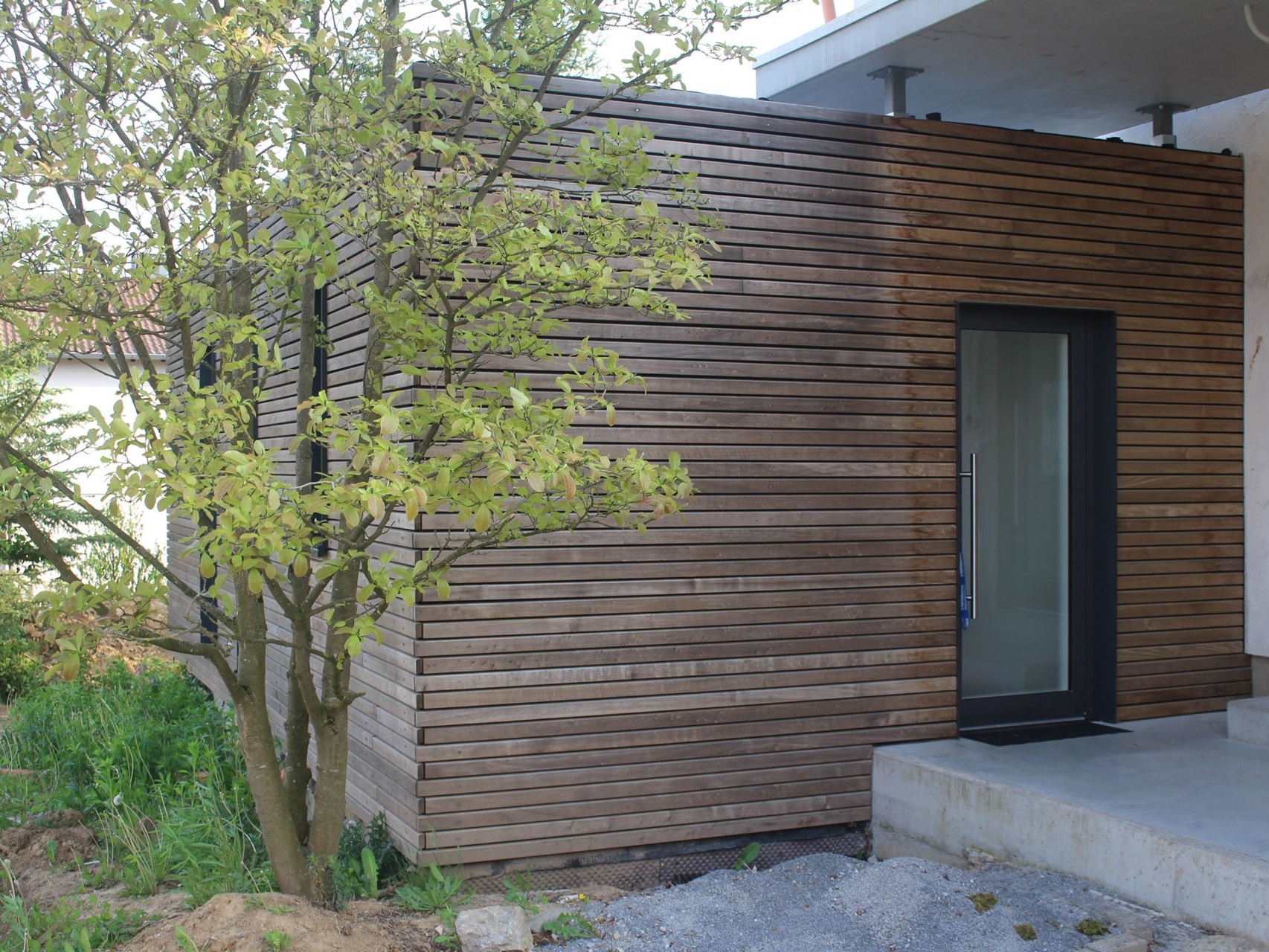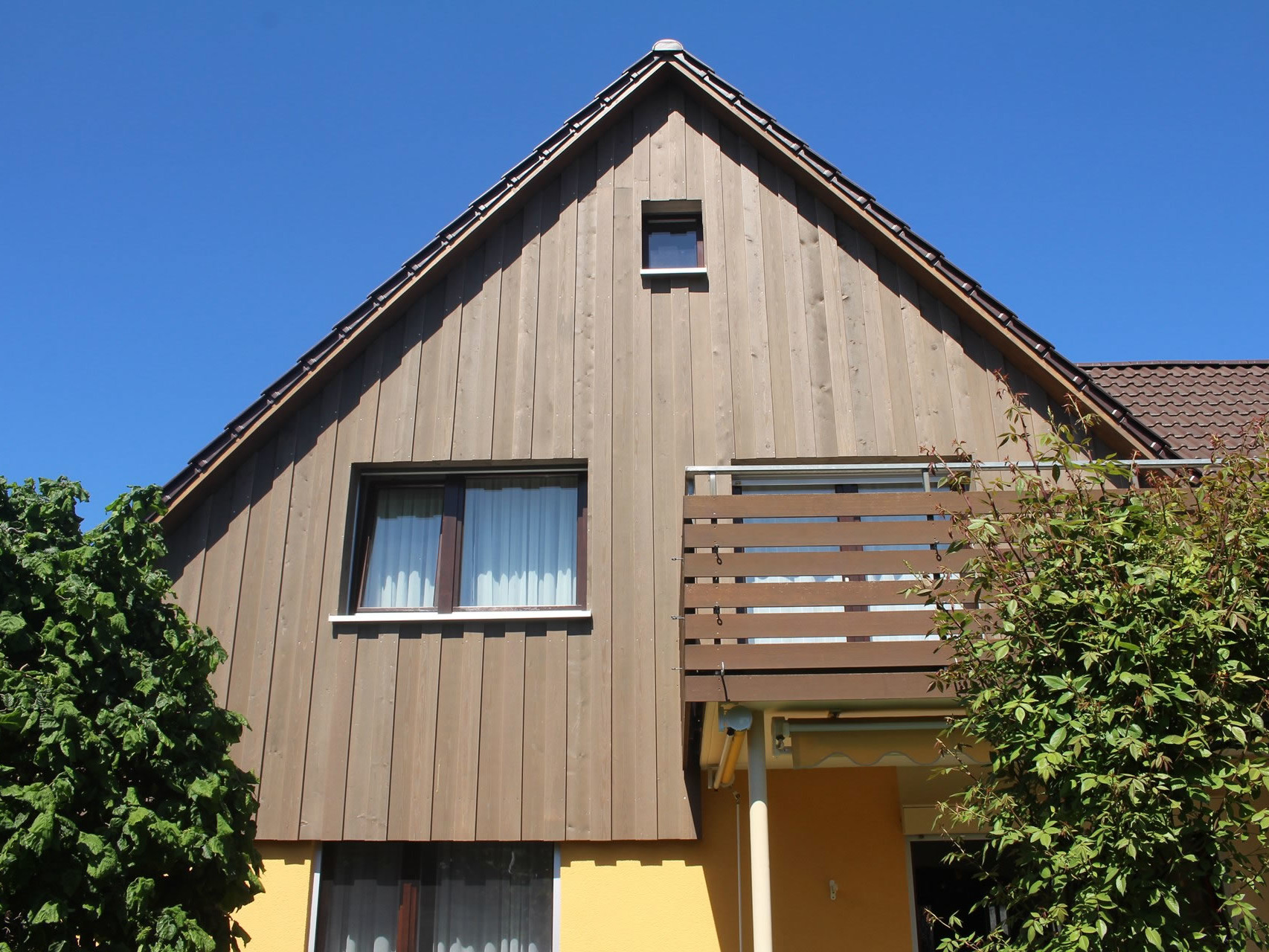 Wenn Sie zudem Ihre Fassade dämmen wollen, können wir das sehr gut im gleichen Zug erledigen. Denn hinter einer Holzfassade lässt sich leicht die Dämmschicht integrieren.